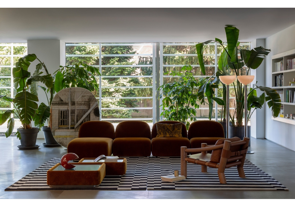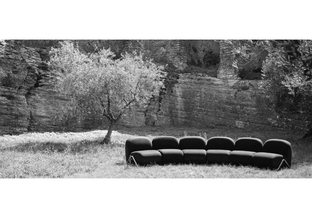 Victoria diseñado por David / Nicolas para Tacchini es un sistema modular con estructura de soporte en tubo, disponible en cromo pulido, cromo negro mate y versión pintada de negro. La tapicería está disponible en diferentes tejidos y colores.