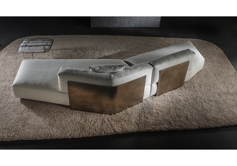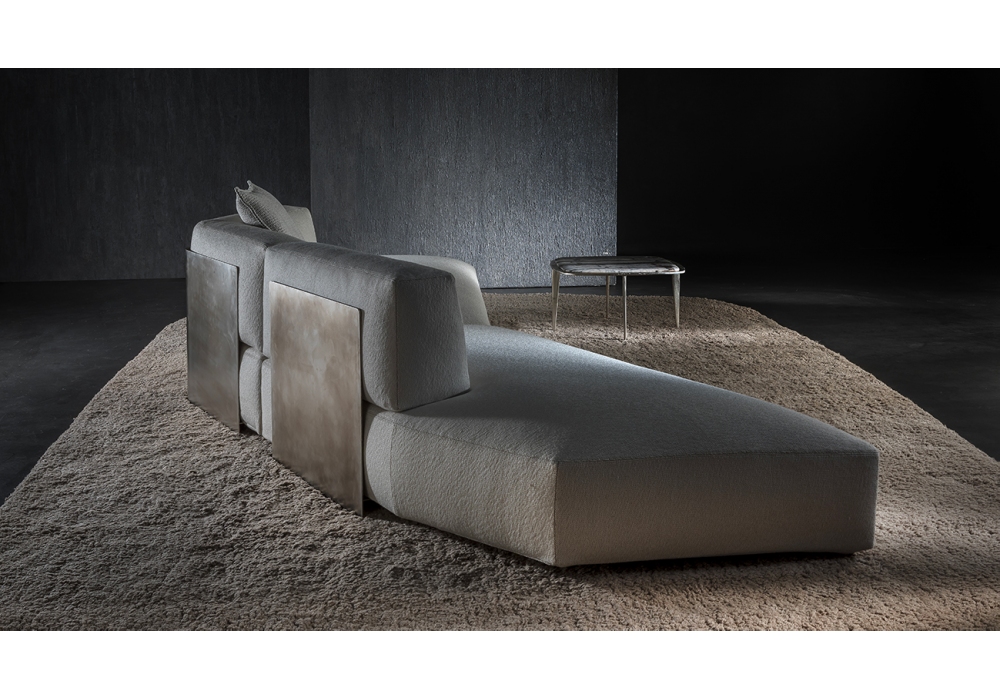 Downtown diseñado por Massimo Castagna para Henge es un sofá modular compuesto por módulos fabricados con estructura de madera maciza, acolchado con espuma de poliuretano, revestido 100% de pluma de ganso. Cojín de asiento con espuma de poliuretano de alta resiliencia y viscoelástica, recubierto con plumón de ganso 100% acolchado. Están disponibles con tapicería de tela o cuero.