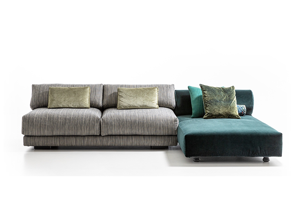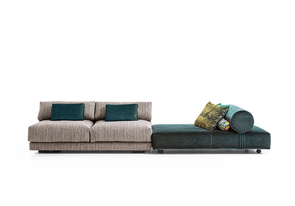Salon Nanà diseñado por Annabel Karim Kassar para Moroso es un sofá modular compuesto por módulos en espuma de poliuretano y fibra de poliéster sobre estructura de madera. Los cojines de los asientos son de pluma de oca sobre espuma de poliuretano. Los cojines de respaldo son de espuma de poliuretano. Pies en haya barnizada atornillados al marco.