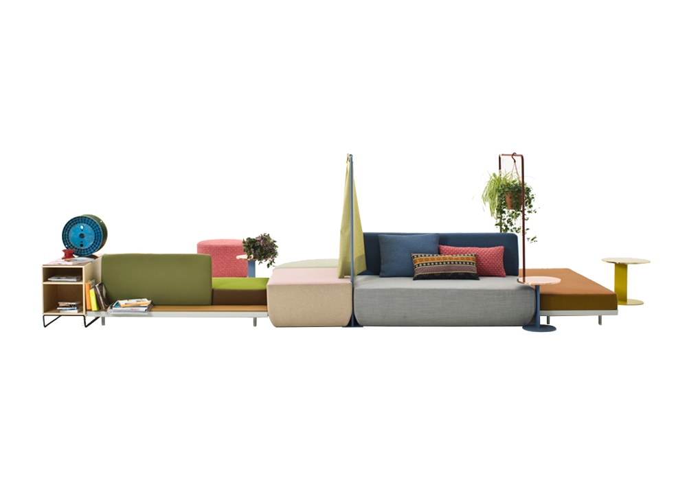 Bikini Island diseñado por Werner Aisslinger para Moroso es un sistema de asientos compuesto por elementos de asiento que se pueden combinar con mesas, librerías y contenedores. Están disponibles varias composiciones preconfiguradas.