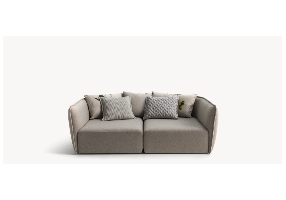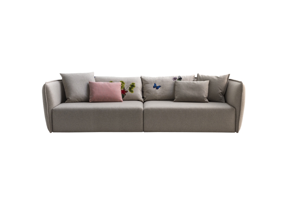 Chamfer diseñado por Patricia Urquiola para Moroso es un sofá modular formado por elementos asientos con espuma de poliuretano resistente a tensiones de variadas densidades y fibra de poliéster sobre estructura de madera. Las partes terminales de los lados son espuma de poliuretano ignífuga inyectada. Las cubiertas de la colección de chaflán son extraíbles.