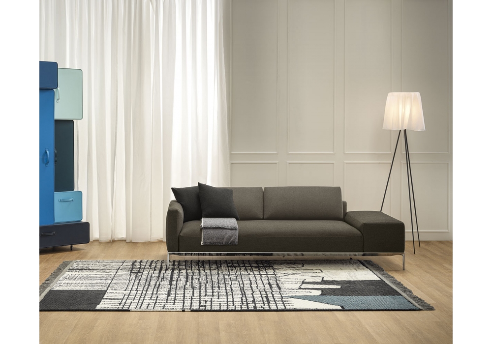 Dizzy diseñado por Ludovica & Roberto Palomba para Casamania & Horm es un sofá realizado con estructura y pies de aluminio, cojines en espuma de poliuretano multidensidad de alta elasticidad. Los cojines descansan sobre correas elásticas con un alto contenido de goma insertadas en el marco de aluminio. Revestimiento en tela o piel. Disponible en diferentes composiciones.