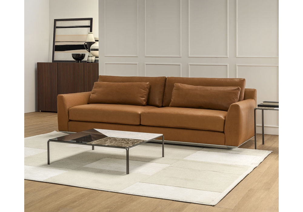 Ellington diseñado por Ludovica & Roberto Palomba para Casamania & Horm es un sofá realizado con estructura, base, respaldo y apoyabrazos de aluminio con estructura de madera maciza y contrachapado acolchado con espuma de poliuretano de alta densidad. Los cojines de espuma de poliuretano de alta elasticidad en diferentes densidades descansan sobre cinturones elásticos con un alto componente de caucho insertado en el marco de aluminio. Revestimiento en tela o piel. Disponible en diferentes composiciones.