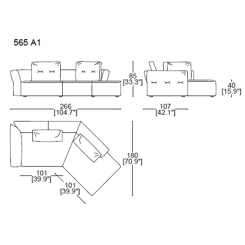Sengu Bold diseñado por Patricia Urquiola para Cassina es un sofá lineal, con península con ángulo obtuso o modular realizado con revestimiento de tela o piel.
