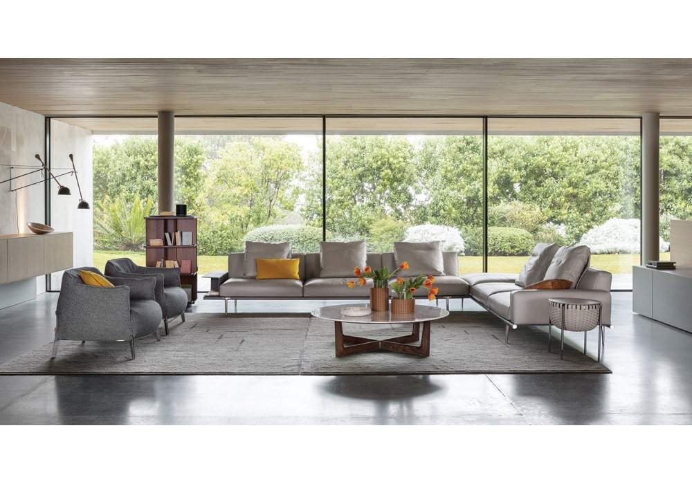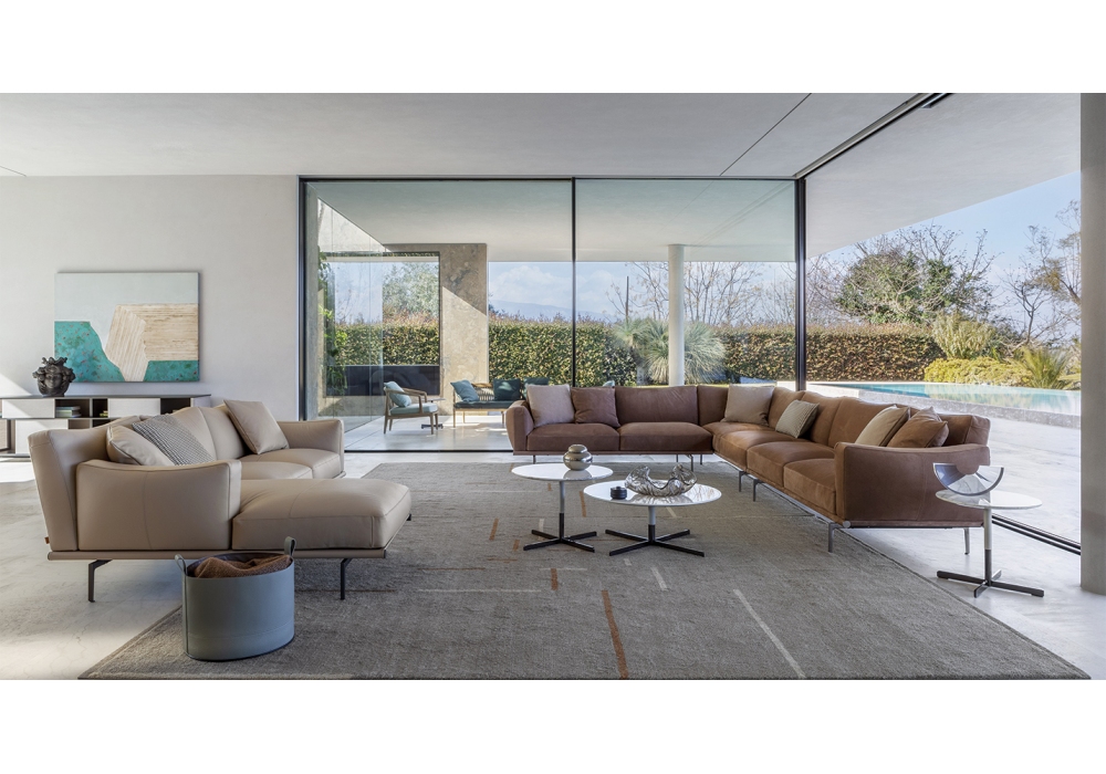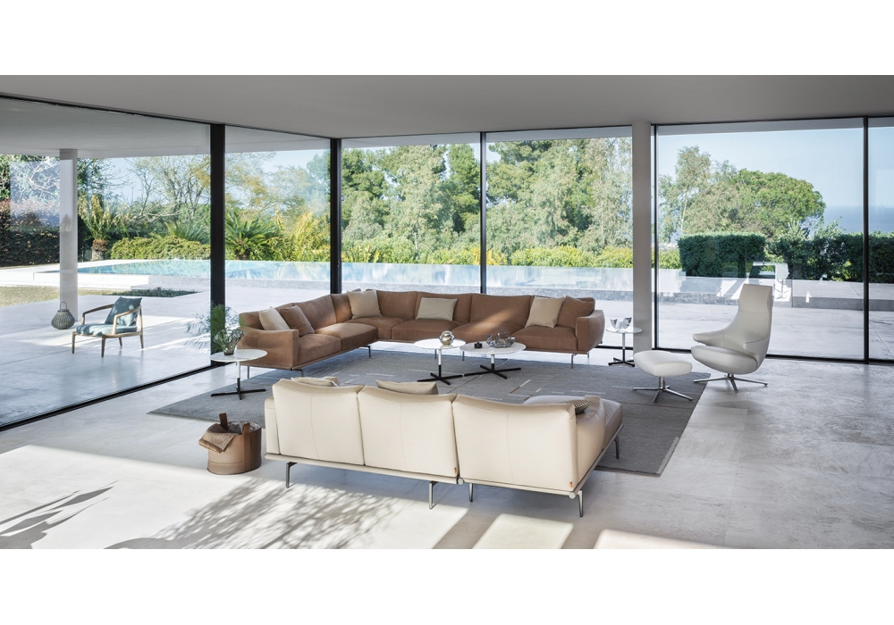 Happy Jack diseñado por Ludovica y Roberto Paloma es un sofá con estructura realizada en aluminio troquelado. Los extremos de las tapas están hechos de zamak. Estructura de respaldo y reposabrazos realizada con contrachapado de abedul y relleno con paneles de masonite y acolchado con espuma de poliuretano y guata de poliéster. Suspensión del asiento con cinturones elásticos de mimbre tejido. Cojines de asiento en espuma de poliuretano de diferentes densidades para mayor comodidad. El sofá está tapizado con cuero.