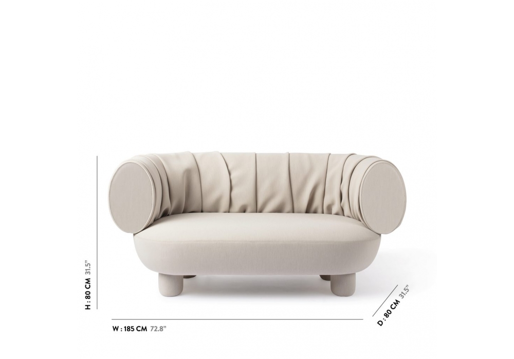 Sumo diseñado por Thomas Dariel para Maison Dada es un sofá de dos plazas con estructura de madera maciza y contrachapado. La base y el asiento están acolchados con viscoelástica y cubiertos con varios tipos de tela.