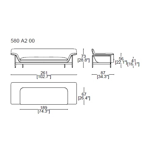 Esosoft diseñado por Antonio Citterio para Cassina es un sofá realizado con base en metal pintado antracita mate, estructura tubular y tapizado en tejido. Relleno de espuma de poliuretano con un porcentaje de origen biológico y guata de PET reciclado. Los cojines de respaldo son obligatorios, se piden por separado. Disponible en diferentes modelos.