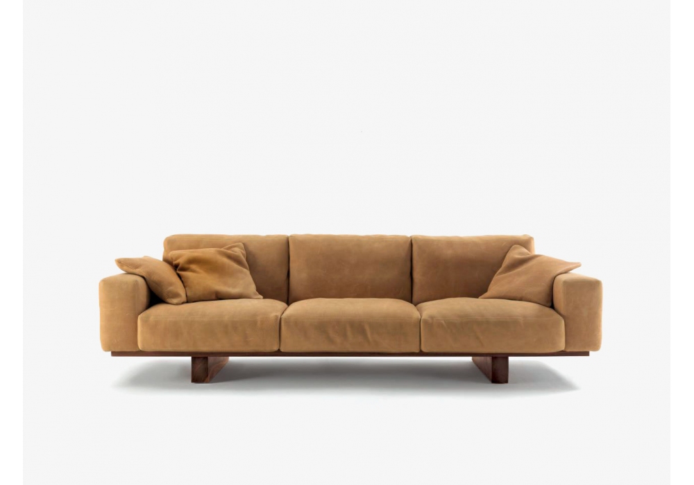 Utah Sofa diseñado por C.R. & S. Riva 1920 es un sofá con respaldo, base y pies de apoyo en tablero de madera contrachapado, compuesto por varios módulos modulares. Tapicería en piel o tela con costuras vistas.