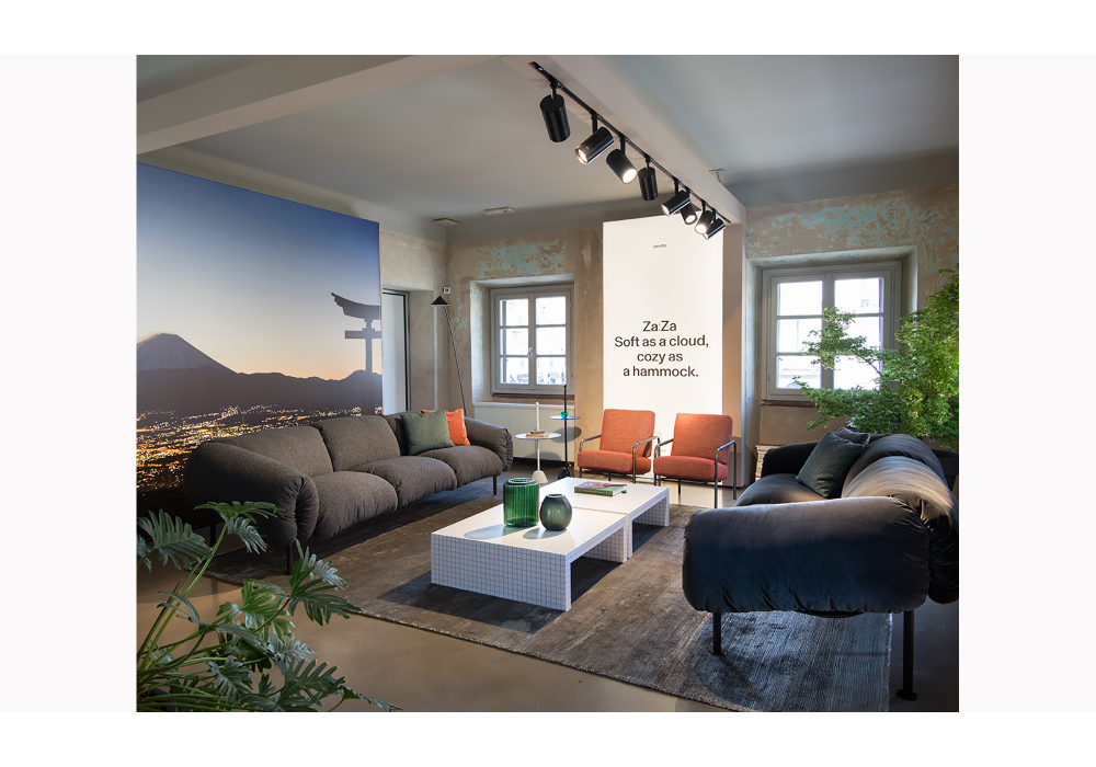 1045 Za:Za diseñado por Zaven para Zanotta es un sofá realizado con una estructura portante en acero pintado negro o rojo mate RAL 3004 equipada con cintas rígidas de poliéster color antracita para sostener los cojines. Cojines de asiento, respaldo y reposabrazos en esferas de poliuretano/poliéster. Montaje del acolchado sin cola. Funda exterior de tela extraíble. Disponible en diferentes dimensiones.