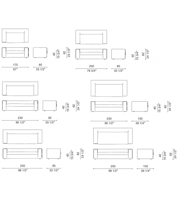 Cuba 25 diseñado por Rodolfo Dordoni para Cappellini es un sofá de dos, tres plazas o modular realizado con revestimiento de tela o cuero, acolchado en espuma y fibra de poliuretano multidensidad, estructura de madera y pies de plástico negro.
