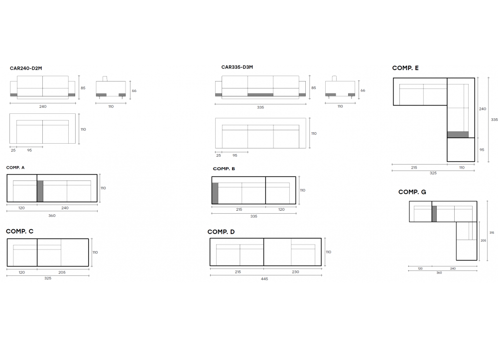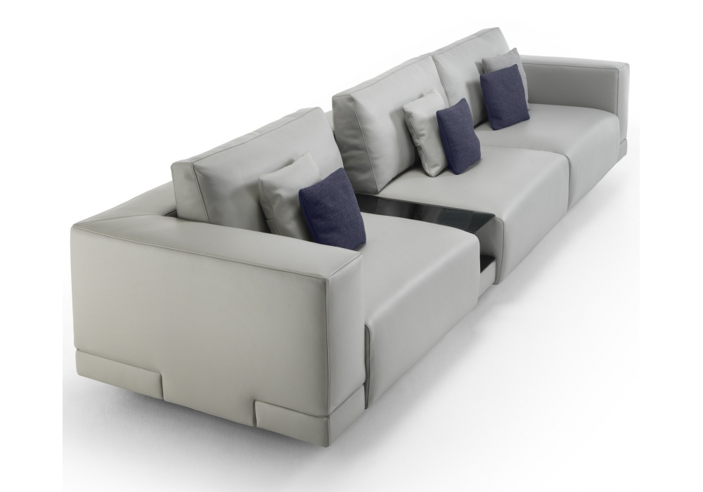 Carrara diseñado por Matteo Nunziati para Fiam es un sofá disponible en configuración fija o modular con revestimiento en tejido o piel. Base formada por elementos lineales en multicapa negra. La banda decorativa de la base y el elemento "bandeja" están siempre revestidos en piel Silky.
