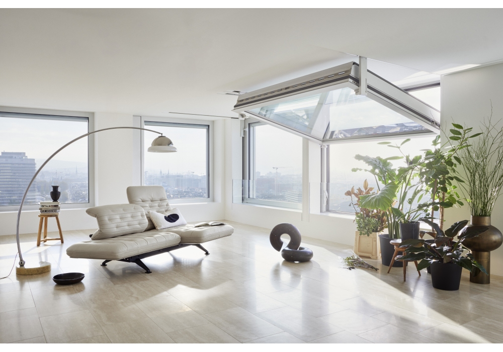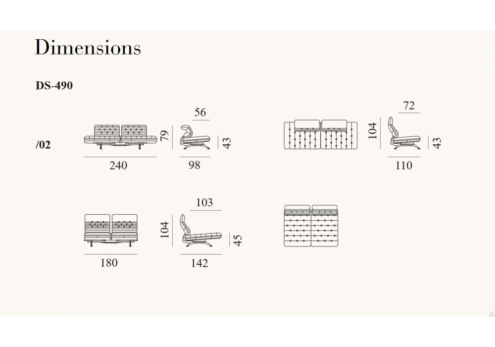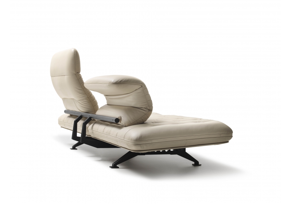 DS-490 diseñado por Thomas Kirn & de Sede Design Team para De Sede es un sofá convertible en sillón reclinable doble. Los dos elementos de asiento descansan sobre finas plataformas que se pueden girar 90° independientemente una de la otra. Tapicería de piel en diferentes acabados.