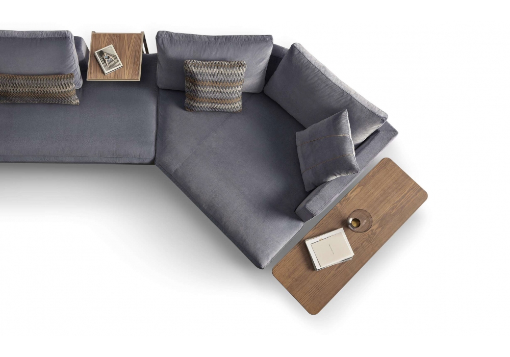 Easy diseñado por Carlo Bimbi para Dema es un sofá con estructura interna en abeto macizo, cojines de asiento en espuma de poliuretano multidensidad, con acolchado en pluma de ganso canalizada. Pies en metal pintado RAL 8022 y revestimiento en tejido o piel.