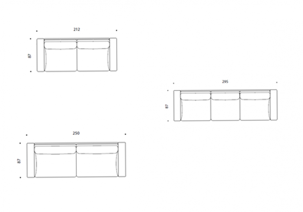 | Dimensiones | - 212 x 87 x H 75 cm; - 250 x 87 x H 75 cm; - 295 x 87 x H 75 cm. |