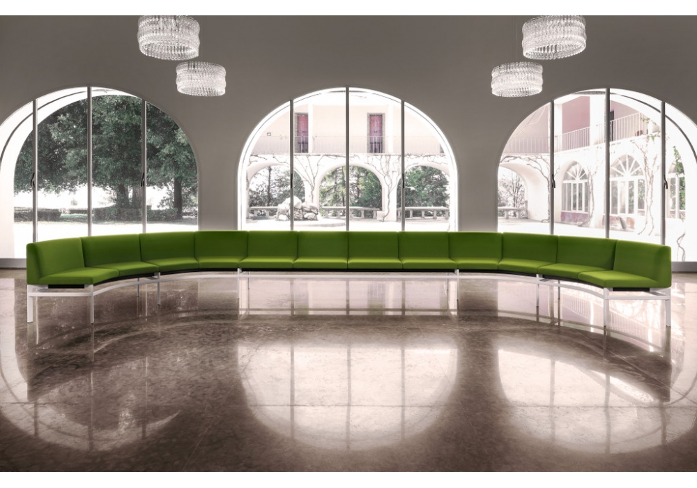 Ponte diseñado por Mario Ruiz para Luxy es un sofá modular que se puede declinar en varias soluciones, formas y colores. Las disposiciones rectas, curvas, redondas, de una o dos caras potencian su versatilidad que se refleja también en las múltiples posibilidades de uso, con la incorporación de soluciones y combinaciones tecnológicas de última generación. Asiento y respaldo en poliuretano flexible estampado en frío, estructura en tubo de acero rectangular en diferentes acabados y patas en aluminio inyectado.