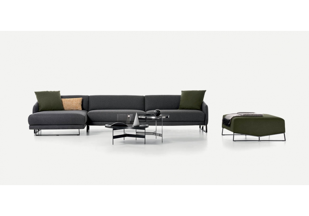 Asolo diseñado por Emilio Nanni para Pianca es un sofá lineal o modular realizado con base de metal, estructura interna en espuma de poliuretano moldeada y marco de acero pintado con polvos epoxi, equipado con movimiento de traslación hacia adelante del cojín del asiento. Revestimiento en tejido desenfundable o en piel o polipiel no desenfundable.