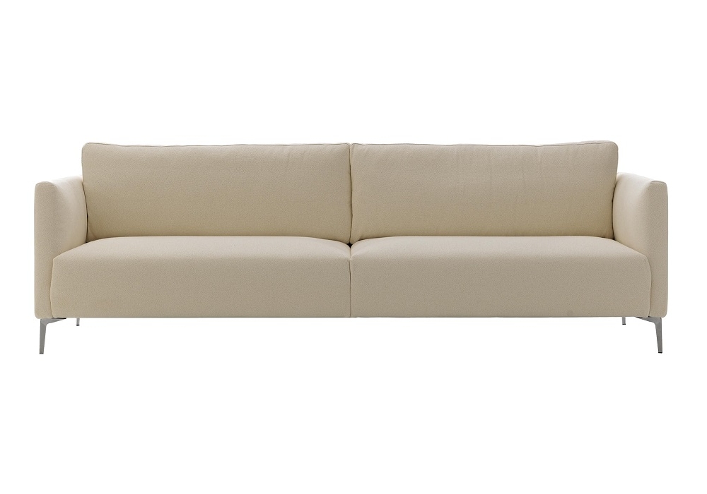 Volo diseñado por Pianca es un sofá realizado con estructura interna con elementos de madera maciza y con paneles de alta densidad acolchados con espuma de poliuretano de densidad diferenciada, superficie del asiento equipada con muelles con cinturones elásticos diferenciados y pies de aleación de aluminio pintado. Revestimiento desenfundable en tejido, piel o piel sintética.