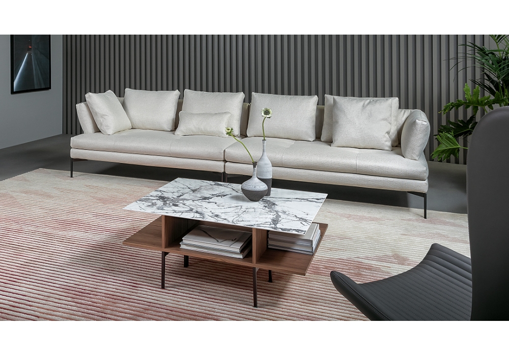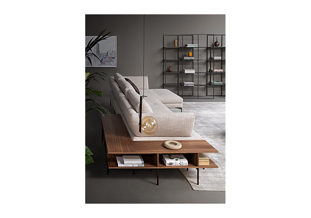 Aliante diseñado por Sergio Bicego para Bonaldo es un sofá modular disponible en diferentes composiciones, con revestimiento desenfundable en tejido en varios colores. La base es de metal pintado en diferentes acabados.
