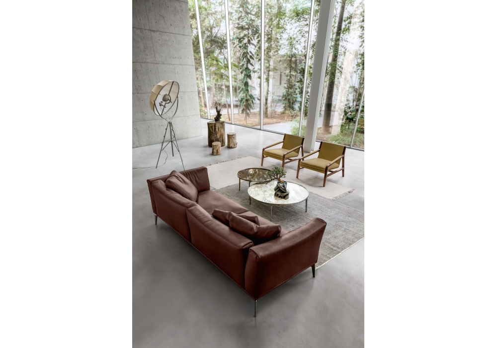 Horizon diseñado por Giuseppe Bavuso para Alivar es un sofá lineal o modular realizado con estructura de madera y acero recubierta de espuma de poliuretano de varias densidades y forro de fibra de poliéster. Cojines de asiento en espuma de poliuretano de alta capacidad de carga con densidad diferenciada y acolchado de pluma esterilizada. Apoyabrazos y respaldos en goma de poliuretano de densidad diferenciada y forro de fibra de poliéster. Pies en fundición de aluminio, pulido o pintado. Revestimiento en piel o tela.