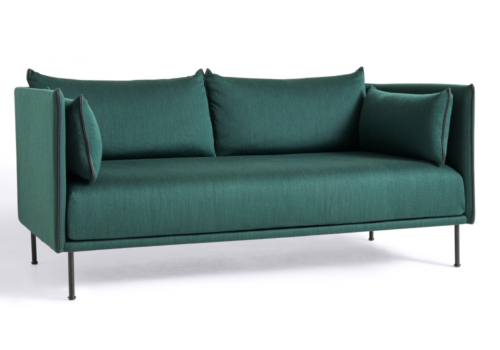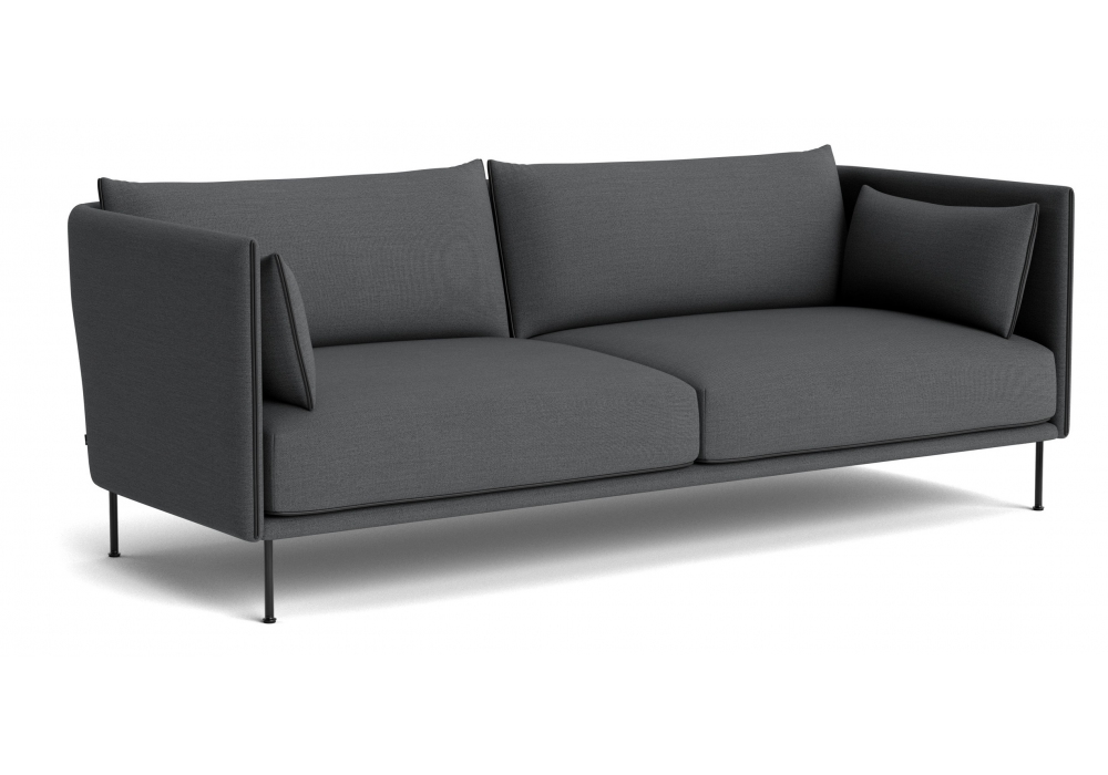 Silhouette diseñado por GamFratesi para Hay es un sofá de dos o tres plazas con revestimiento en piel o tela, cojín del asiento de muelles ensacados y espuma de PU, cojines del apoyabrazos y del respaldo rellenos de pluma y espuma granulada, patas en acero pintado, cromado o macizo roble y vivo en piel o en el mismo color que la tela. Disponible en diferentes tapizados.