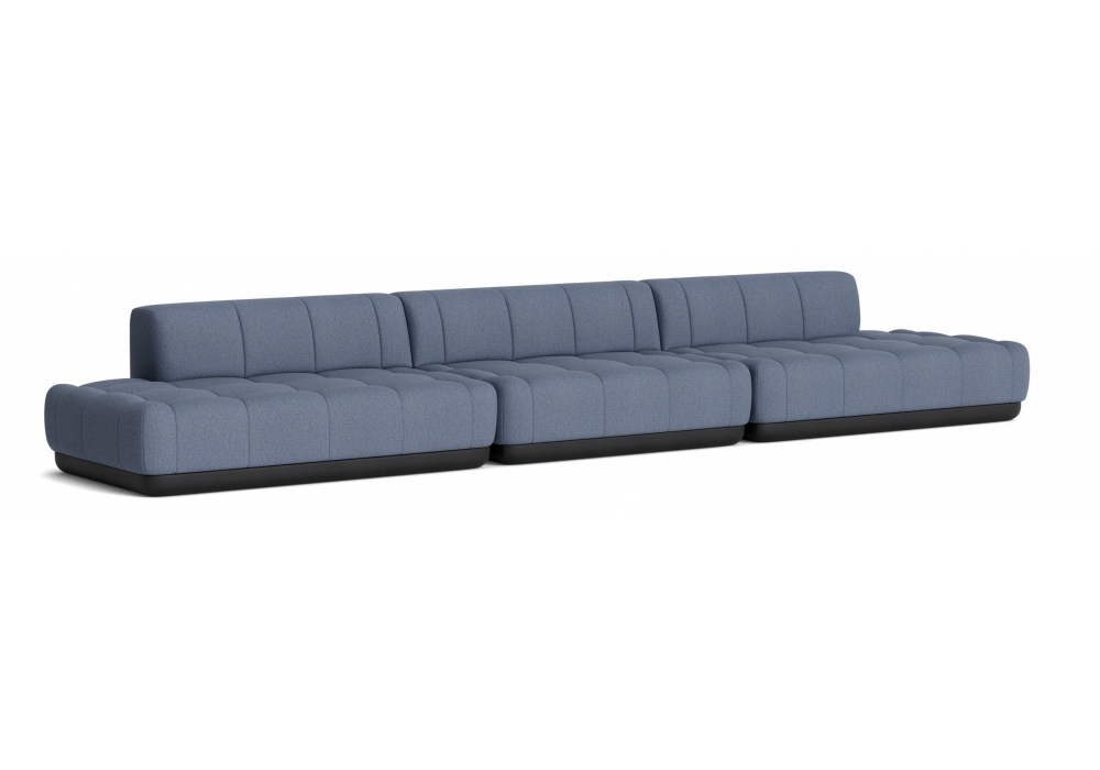 Quilton diseñado por Doshi Levien para Hay es un sofá modular con tapizado en tejido o piel y patas en haya maciza teñida de negro. También disponible en la versión con base en contraste negro y en diferentes modelos y tapizados.