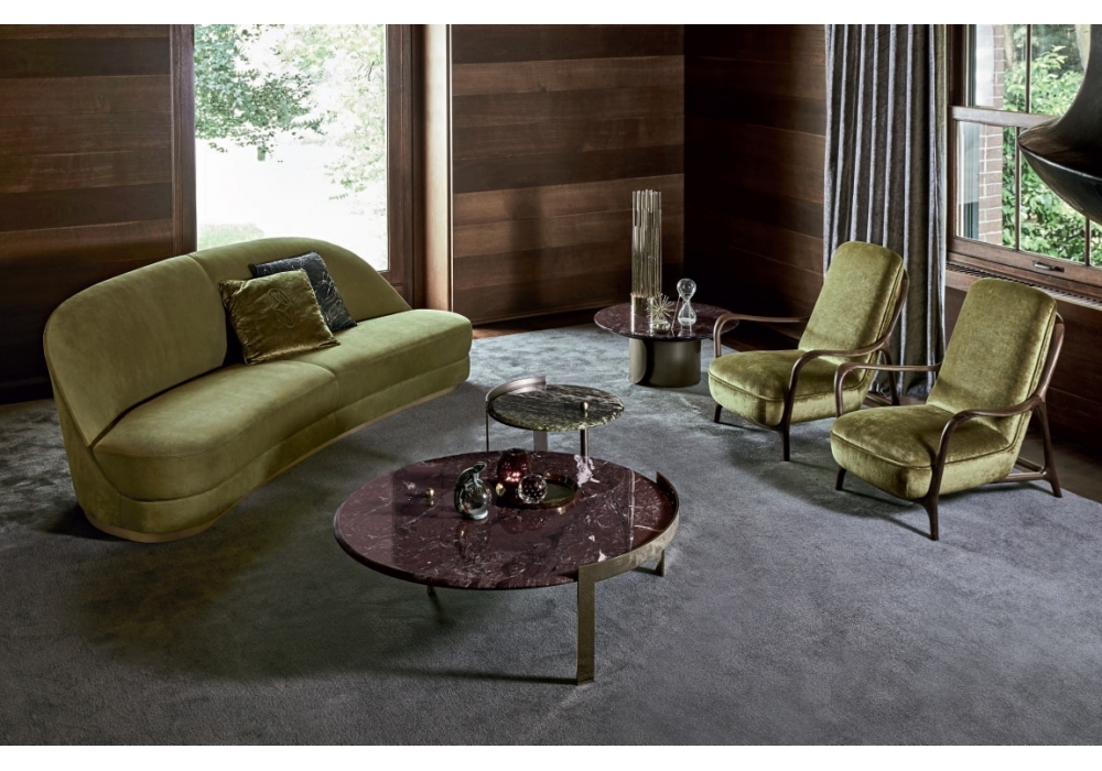 Kathy diseñado por Castello Lagravinese Studio para Opera Contemporary es un sofá realizado con espuma de poliuretano en acolchado de diferentes densidades y revestimiento en tela o piel. Disponible en 2 dimensiones.
