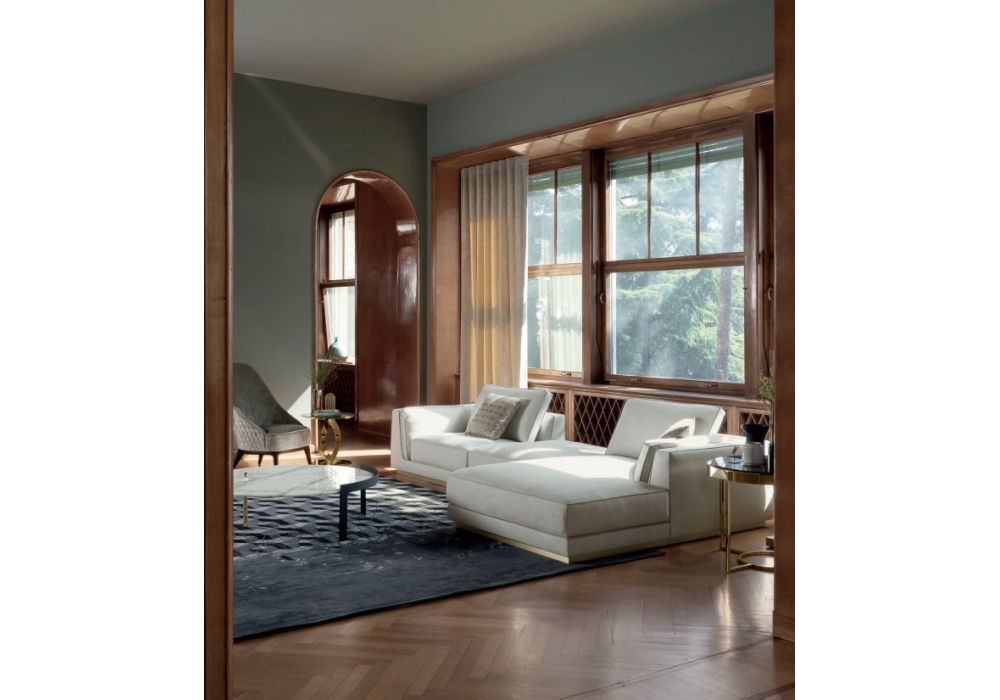 Barry diseñado por Castello Lagravinese Studio para Opera Contemporary es un sofá modular realizado con base en madera de haya, acolchado en espuma de poliuretano de diferentes densidades y pluma y revestimiento en tejido o piel.