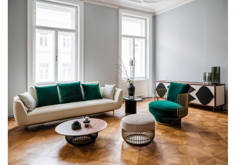 Andes diseñado por Wittmann y Nichetto para Wittmann es un sofá modular con estructura de madera y tapizado en tejido, terciopelo o piel. Disponible en diferentes composiciones y acabados.