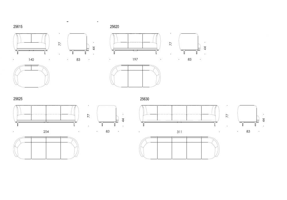| Dimensiones | - 140 x 83 x H 77 cm; - 197 x 83 x H 77 cm; - 254 x 83 x H 77 cm; - 311 x 83 x H 77 cm. |