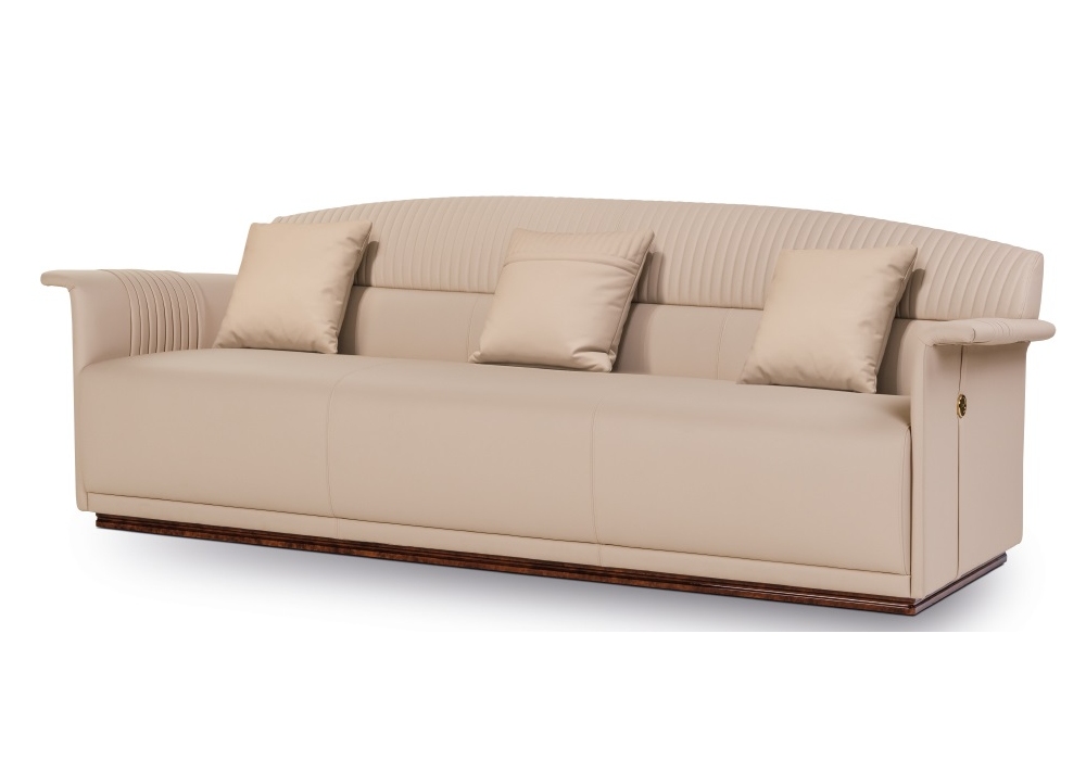 Madison diseñado por Andrea Bonini para Turri es un sofá con estructura en madera maciza y contrachapado con espuma de poliuretano multidensidad y tapizado en diferentes tejidos o pieles. Base de madera en acabado brillo. Disponible en la versión con o sin respaldo acolchado.