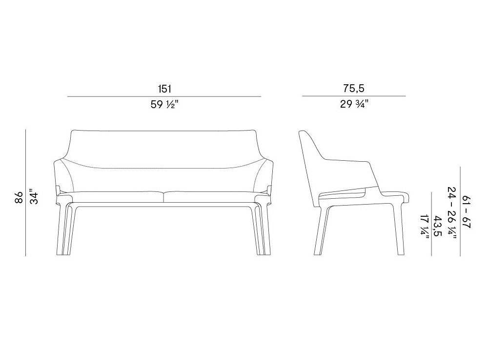 Velis diseñado por Mario Ferrarini para Potocco es un sofá con respaldo alto realizado con estructura en fresno macizo o nogal Canaletto en diferentes acabados. El asiento y el respaldo están acolchados con espuma de poliuretano ignífuga y revestidos de varios tipos de tejido, piel o ecopiel.