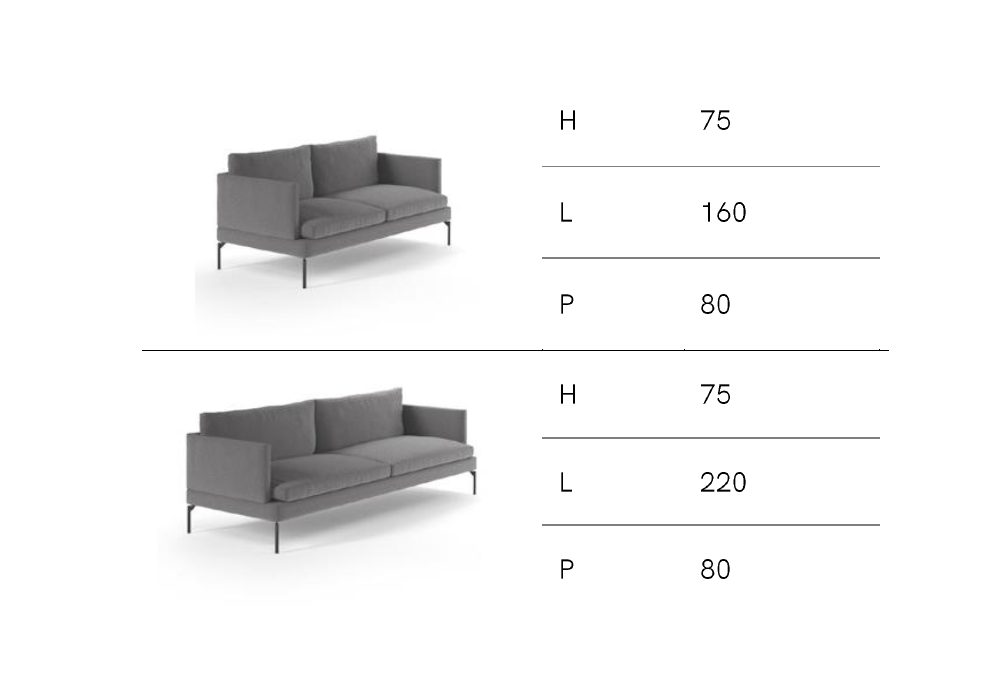 Saudade diseñado por Edi & Paolo Ciani Design para Sitlosophy es un sofá de dos o tres plazas con estructura en abeto macizo y contrachapado y acolchado en espuma de poliuretano indeformable con revestimiento en diferentes tejidos, pieles o ecopieles. Los pies son de acero pintado con epoxi negro.