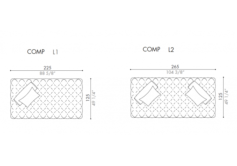 | Dimensiones | 225 x H 125 cm; 265 x H 125 cm. |