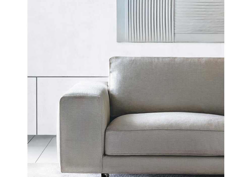 Hampton diseñado por Castello Lagravinese para Casamilano es un sofá modular con estructura en abeto macizo, contrachapado de álamo y paneles de aglomerado. Relleno de espuma de poliuretano de densidad diferenciada y tapizado de tejido o piel. Pies en metal pintado de negro.