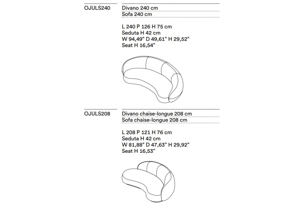 | Dimensiones | 240 x 126 x H 75 cm; 208 x 121 x H 76 cm. |