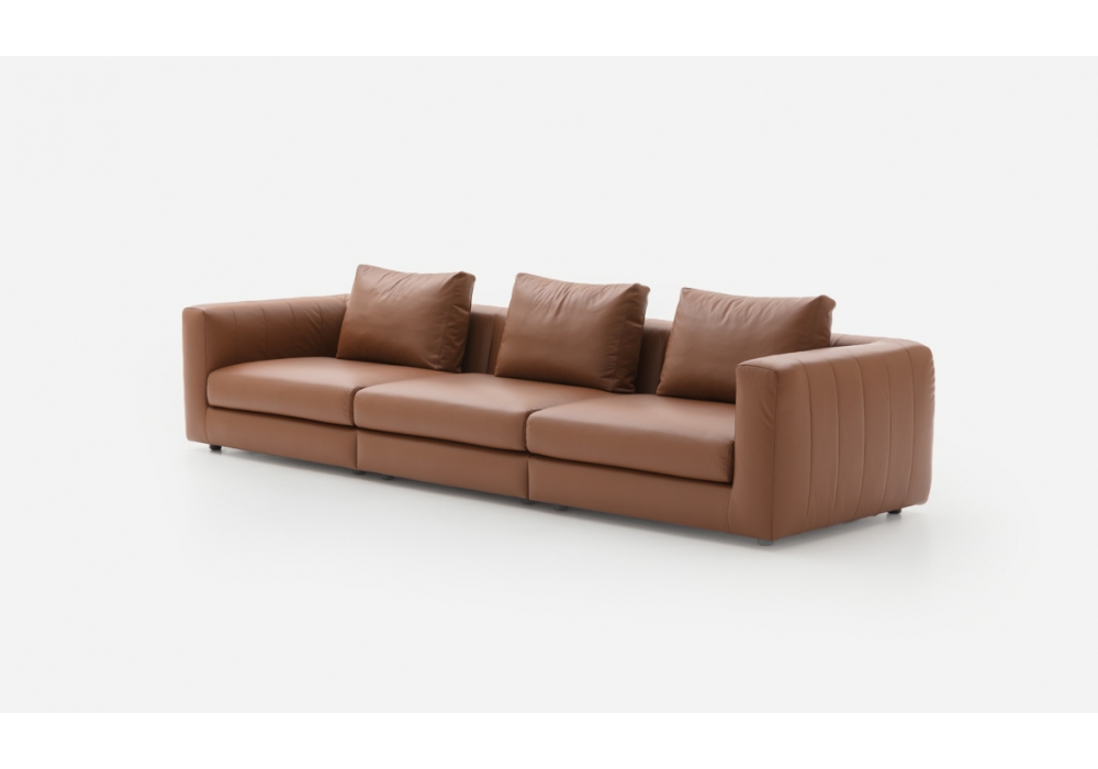 Tobias diseñado por Pier Luigi Frighetto para Pianca es un sofá modular realizado con revestimiento en tela o piel. Los apoyabrazos, respaldos y pufs se caracterizan por el acolchado de lamas verticales tono sobre tono: la particular elaboración crea elegantes juegos de luces en las superficies, revelándose como un signo gráfico distintivo y refinado. Los diferentes módulos, laterales, rinconeros, centrales, puf y chaise longue, permiten crear configuraciones a medida, perfectas para cualquier ambiente.
