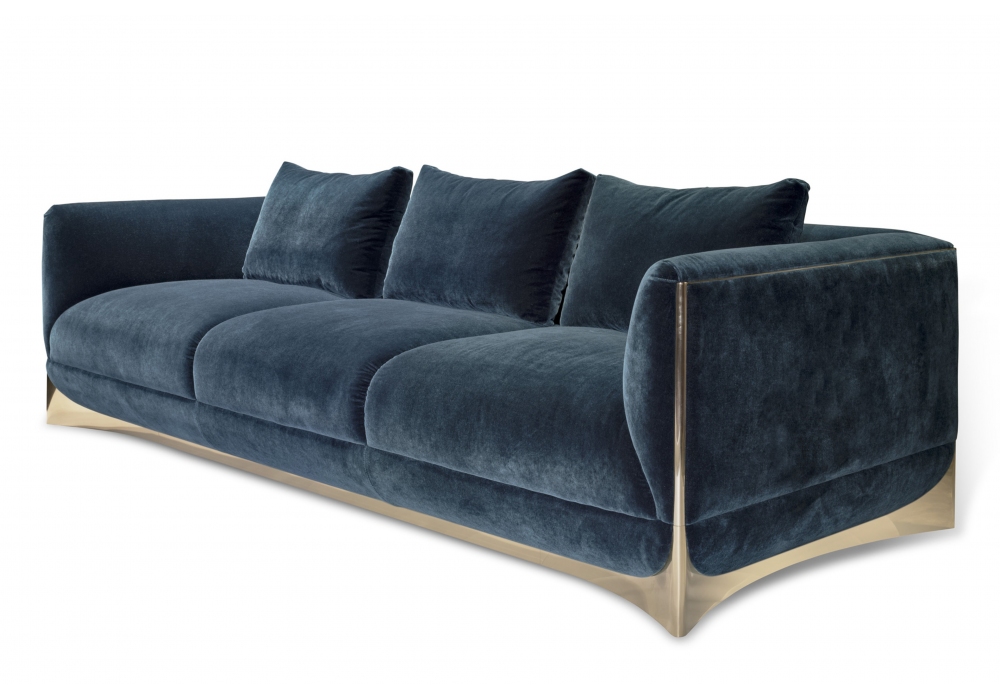 Ca' Foscari diseñado por Alessandro La Spada para Visionnaire es un sofá con base perfilada de madera revestida de acero inoxidable curvada con perfil cóncavo. El acolchado es de poliuretano de diferentes densidades, MemoryFoam y pluma revestido de piel o tejido. Ca' Foscari está disponible en diferentes modelos y acabados.