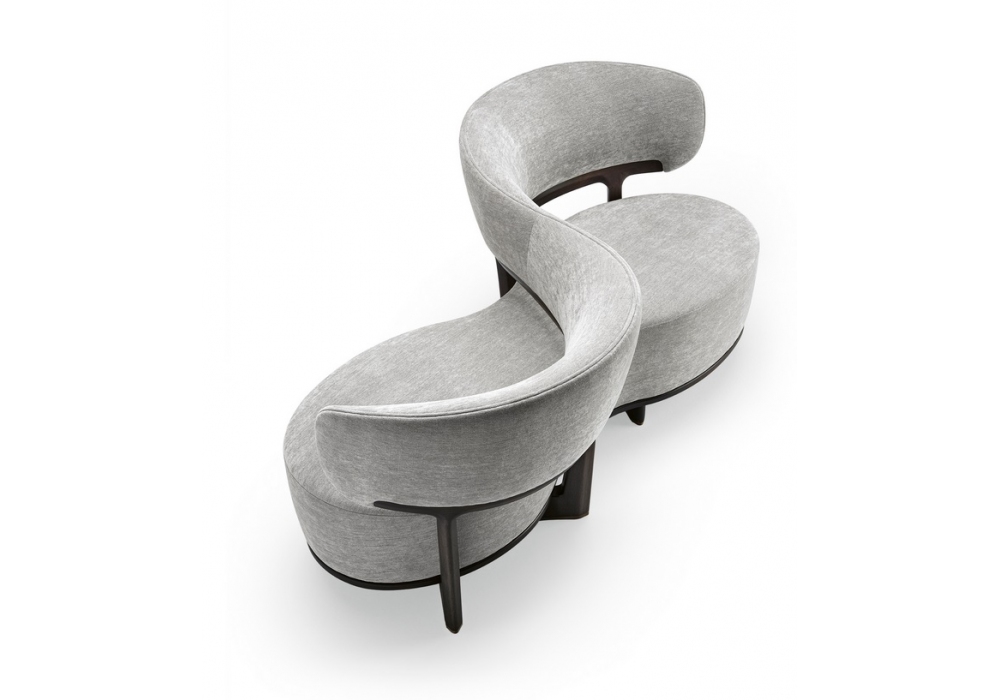 Ico Vis à Vis diseñado por Roberto Lazzeroni para Ceccotti Collezioni es un sofá con estructura realizada en nogal americano macizo. Asiento y respaldo en contrachapado de álamo, acolchado, tapizado en tela o piel. Pies de latón. Disponible en diferentes acabados.