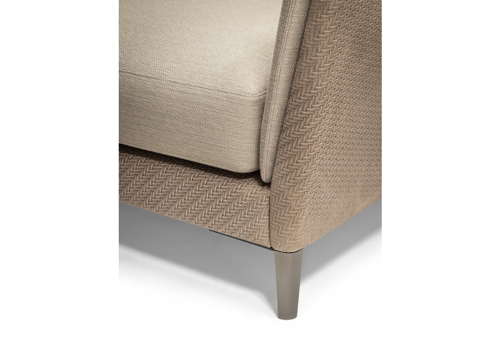 Bretagne Gran Comfort diseñado por Poltrona Frau Style & Design Center para Poltrona Frau es un sofá con estructura en madera curada de haya y álamo. El acolchado es de espuma de poliuretano y fieltro prensado, mientras que el respaldo y los reposabrazos son de espuma de poliuretano y guata de poliéster. Los cojines del asiento están disponibles en dos versiones: “Soft Comfort”, con relleno de pluma de ganso, copos de poliéster y pieza estabilizadora de espuma de poliuretano o “Firm Comfort”, con relleno de espuma de poliuretano y guata de poliéster. La tapicería es de cuero o tela Frau®, mientras que los pies son de aluminio con acabado bronce. Bretagne Gran Comfort está disponible en diferentes modelos, versiones y acabados.