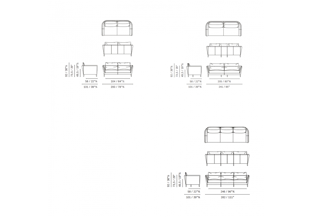 | Dimensiones | 200 x 101 x H 92 cm; 241 x 101 x H 92 cm; 282 x 101 x H 92 cm. |