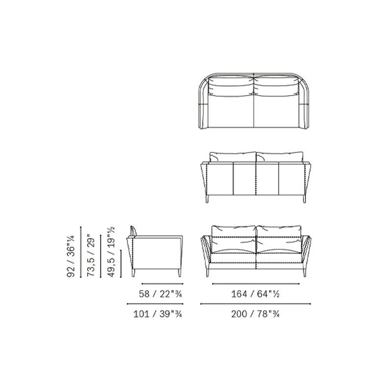 | Material de construcción | Legno di faggio e pioppo stagionato; Multistrato di betulla; pannelli di faesite; Poliuretano espanso e ovatta poliestere; Pelle o Tessuto; Alluminio. |