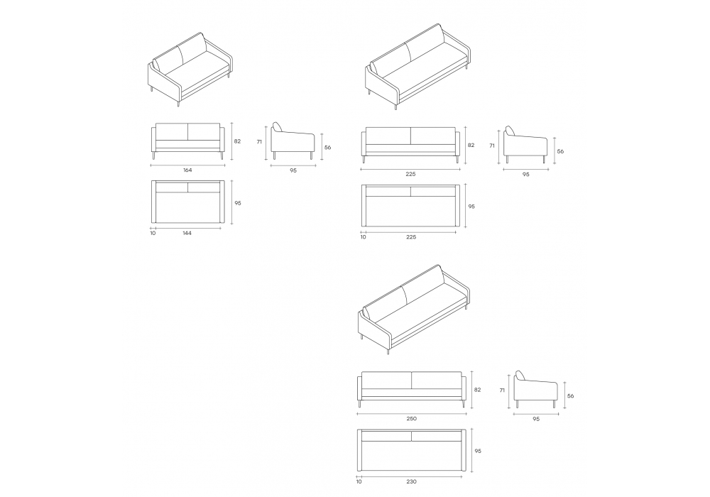 | Dimensiones | 164 x 95 x H 82 cm; 225 x 95 x H 82 cm; 250 x 95 x H 82 cm. |