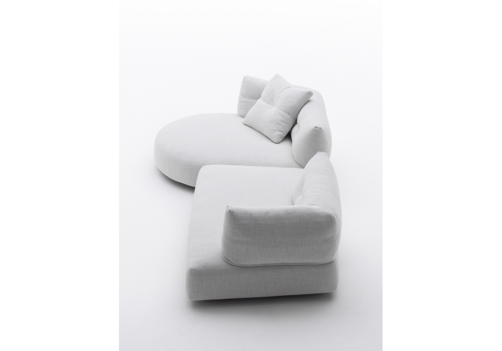 Ethìa diseñado por Jai Jalan para Désirée es un sofá modular realizado con estructura metálica para la fijación de los respaldos en acero pintado bronce, acolchado en espuma de poliuretano y tapizado completamente desenfundable en tejido o piel.
