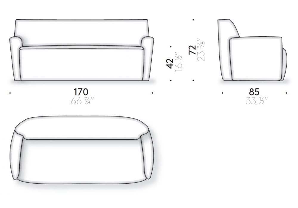 Ami diseñado por Yabu Pushelberg para DePadova es un sofá realizado con estructura de acero con correas elásticas y panel de madera contrachapada de abedul. El acolchado es de espuma de poliuretano de diferentes densidades y guata de poliéster forrada de terciopelo de poliéster. El tapizado es desenfundable en tejido o fijo en piel o terciopelo. Las patas son de material termoplástico.