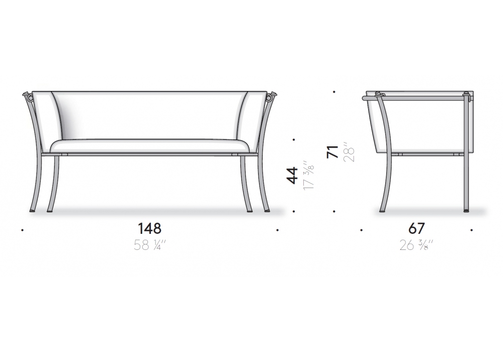 Smeralda diseñada por Anna von Schewen para DePadova es una sofá con estructura de acero con revestimiento en polvo de color gris antracita mate. El asiento tiene estructura de acero y correas elásticas, acolchado con espuma de poliuretano y guata de poliéster, forrado con terciopelo de poliéster. El respaldo y los apoyabrazos tienen estructura rígida de poliuretano, acolchado con espuma de poliuretano y guata de poliéster, forrado con terciopelo de poliéster. La tapicería es completamente desenfundable en tejido disponible en diferentes acabados.
