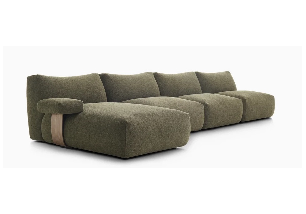 Goom diseñado por Jean Marie Massaud para MDF Italia es un sofá modular tapizado en diferentes telas. Se puede añadir uno o dos reposabrazos con estructura pintada en mate o con acabado en madera.