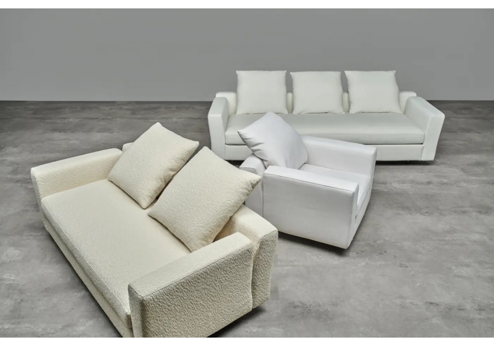 Bill diseñado por Hannes Wettstein para Baleri Italia es un sofá de 2/3 plazas con estructura interna de madera multicapa. El acolchado y el cojín plegable, adaptable a la estructura del respaldo, están hechos de espuma de poliuretano elástica. Pies delanteros de acero con pintura en polvo color gris negro y ruedas traseras metálicas. Disponible en tejido o piel.