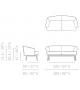The shell of the backrest is in moulded polyurethane foam, lightly padded with polyester wadding. The seat is in seasoned beech padded with polyurethane foam and pressed felt, and is sprung with elastic belts. The seat cushions are in goose feather with stabilising insert in polyurethane foam to reduce sinking while ensuring comfort. The base has four feet and is in wengé-stained ash.