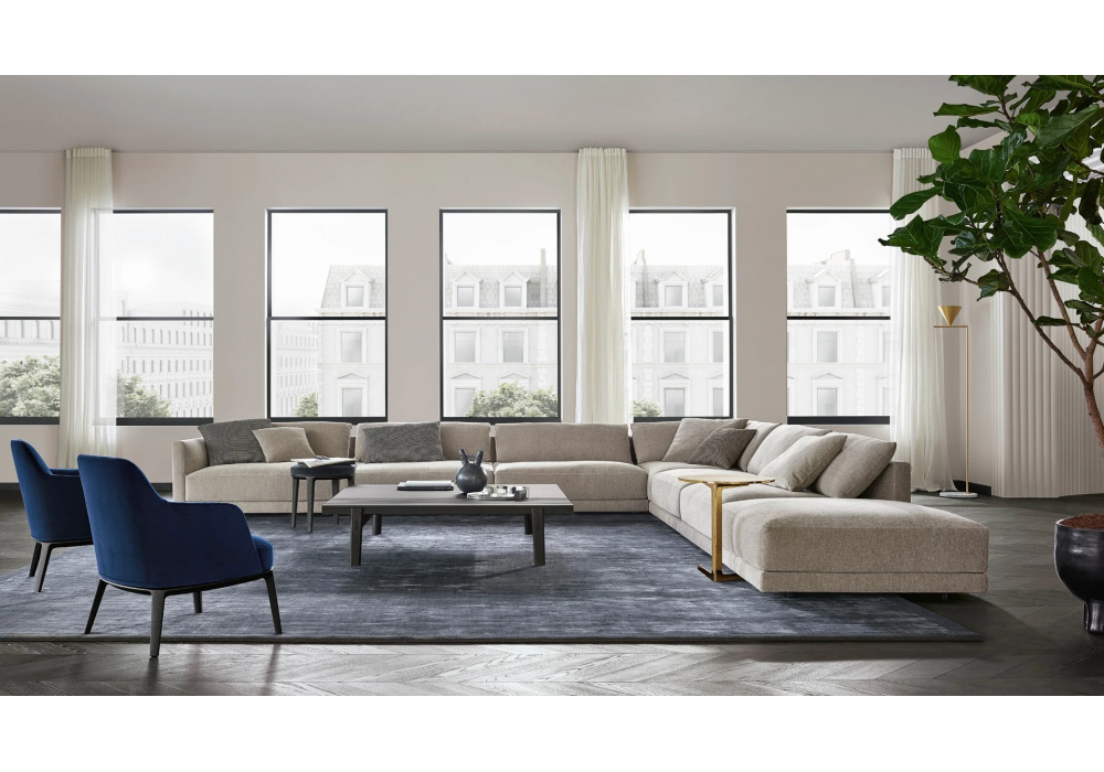 Bristol diseñado por Jean-Marie Massaud para Poliform es un sofá modular con estructura flexible de poliuretano moldeado. Tapizado en tela o piel en varios acabados. Disponible con cojines sencillos, dobles, libres o confort.