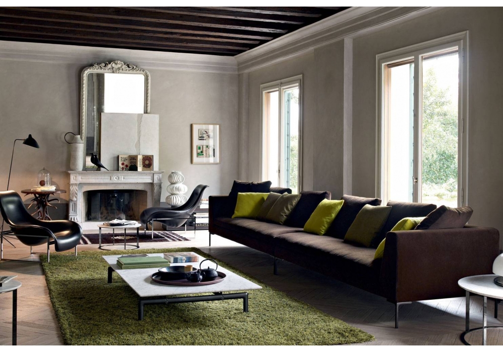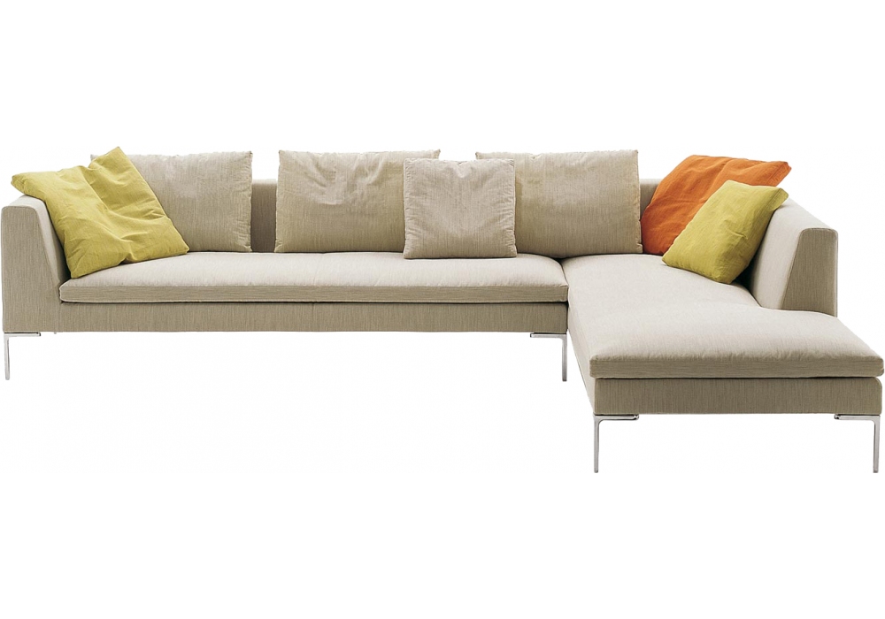 Charles diseñado por Antonio Citterio para B&B Italia es un sofá con estructura interna de acero tubular y perfiles de acero y acolchado interno de poliuretano expandido flexible en frío Bayfit®, revestimiento de fibra de poliéster. Revestimiento en diferentes tejidos o pieles.